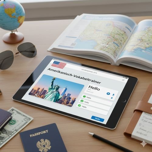 Amerikanisch VokabeltrainerSie lernen die wichtigsten 450 amerikanischen Vokabeln und Redewendungen. Dank vielfältiger Lernmethoden bauen Sie schnell einen Wortschatz auf, mit dem Sie sich im Urlaub souverän zurechtfinden.